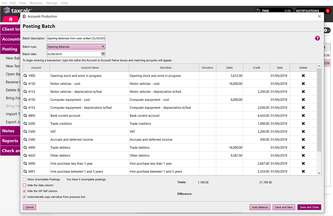 - Master chart of accounts editing function to customise to your firm