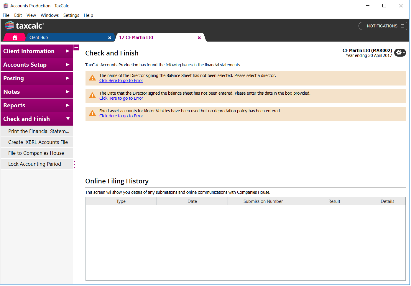 As with all TaxCalc products, TaxCalc Accounts Production features Check & Finish, which reviews and validates the accounts to ensure consistency, highlights potentially missing disclosures and reports back anything that needs your attention.