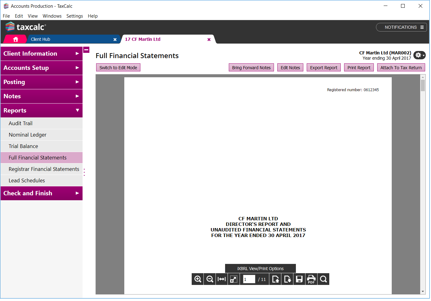 - Export financial statements to Microsoft Word, Excel, PDF and iXBRL (limited companies)