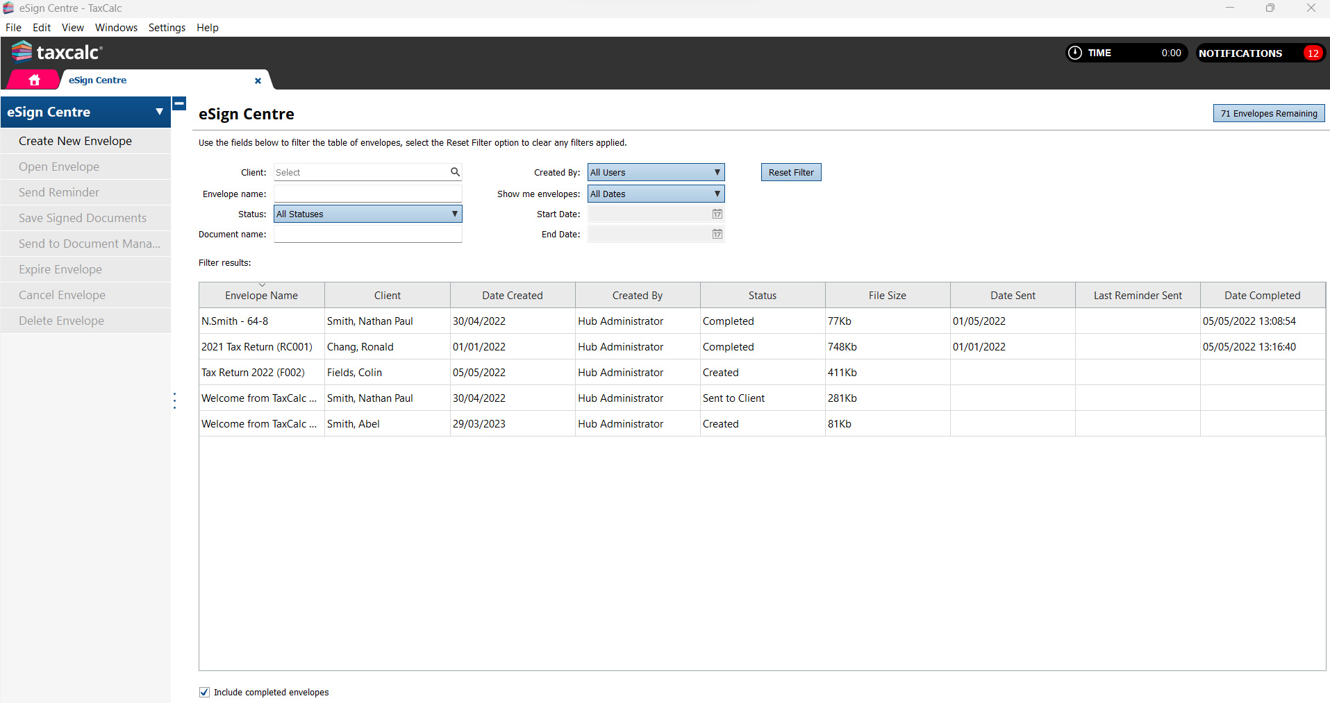 TaxCalc to your clients for approval.