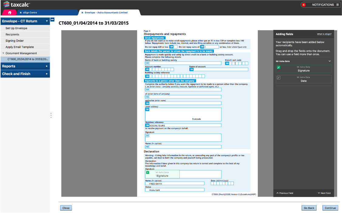 - Quickly send signed documents to TaxCalc Document Manager