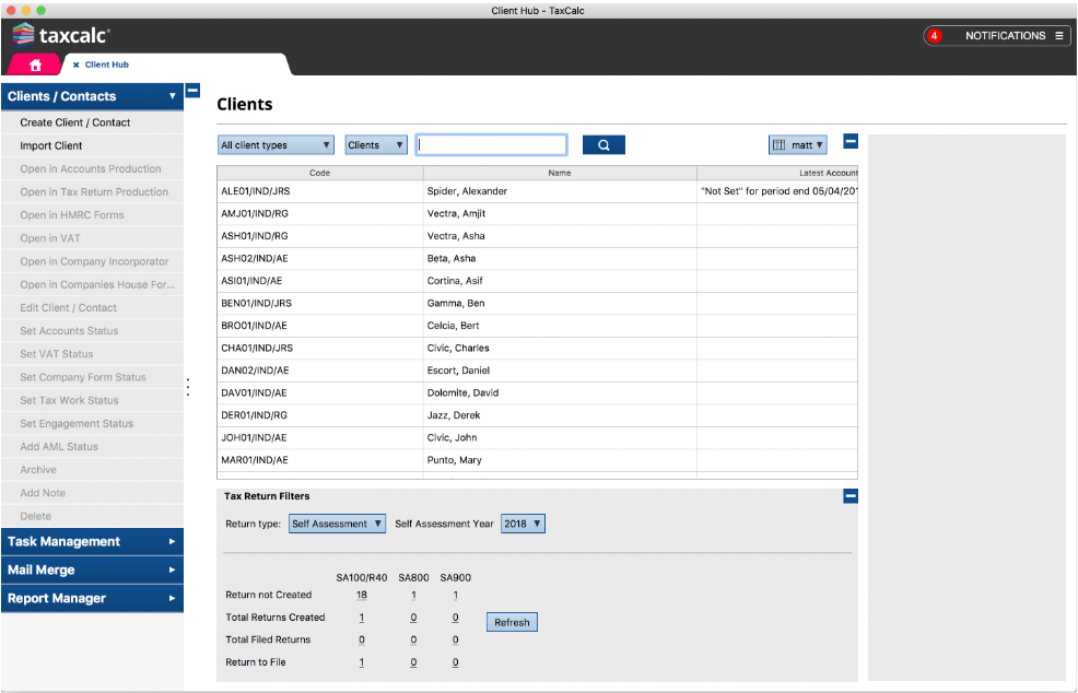 Use TaxCalc Practice Manager to monitor progress, set work reminders and keep on track of your workload.