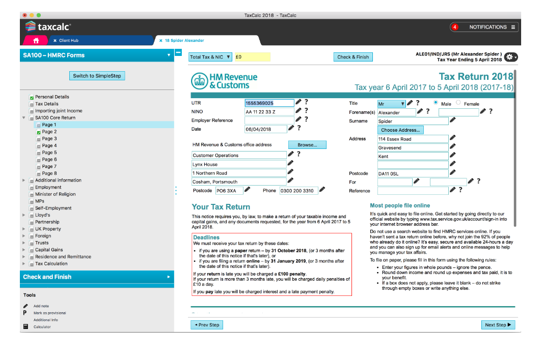 - Complete your clients’ returns directly using HMRC Forms mode or by using our unique SimpleStep mode (1), a questionnaire format to guide you through the Return, so you only see what you need to